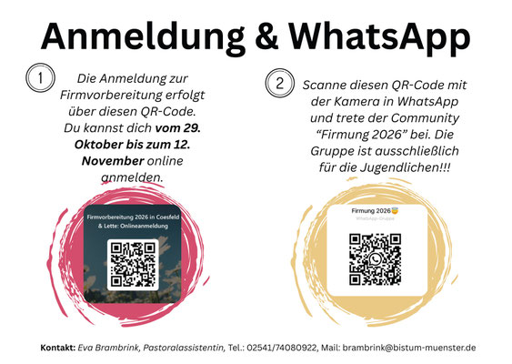 Bei Rückfragen oder Anmerkungen gerne bei Pastoralassistentin Eva Brambrink, Tel. 02541 74080922, brambrink@bistum-muenster.de melden.
